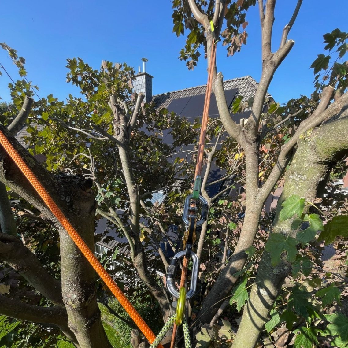 Wenn Maschinen nicht weiterkommen, geht unser Baumkletterer direkt in den Baum. So können wir Rückschnitt, Pflege oder Fällungen auch an schwer erreichbaren Stellen sicher und präzise durchführen.