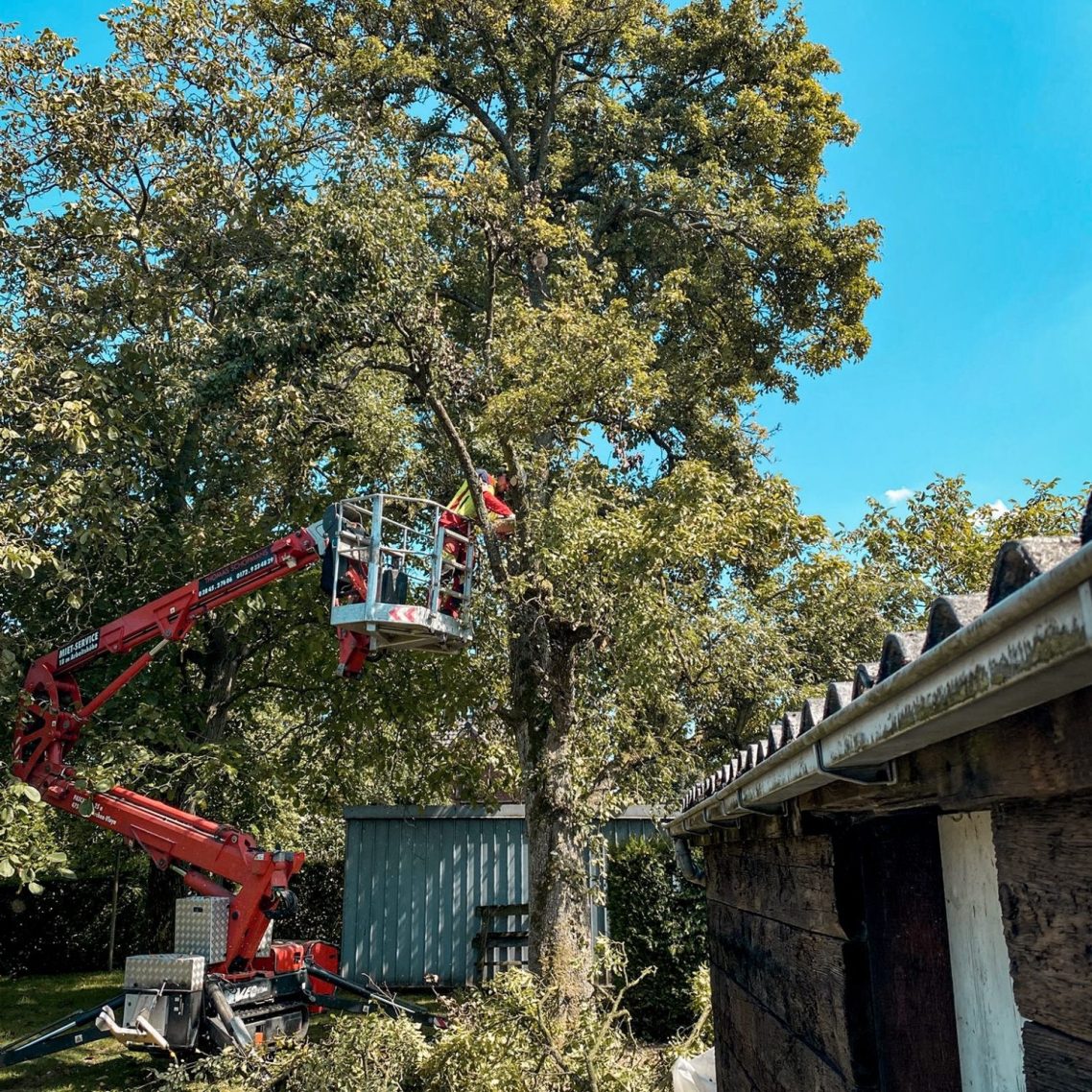 Mit der Hubarbeitsbühne können wir Bäume sicher Stück für Stück von oben abtragen. Diese Methode eignet sich besonders bei wenig Platz oder in der Nähe von Gebäuden. So arbeiten wir präzise, kontrolliert und mit maximaler Sicherheit